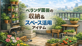 ベランダで植物を育て始めると、鉢や土、スコップ、肥料、じょうろなどが少しずつ増えていきます。最初は置けていたとしても、数が増えると足元が狭くなり、水やりや掃除のたびに物を動かすことになります。ベランダ園芸で大切なのは、広いスペースを用意する...
